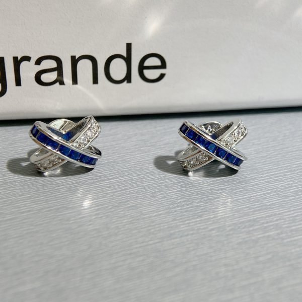 Balenciaga Blue Diamond Cross Stud Earrings