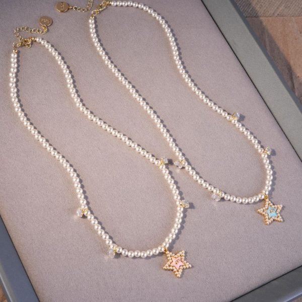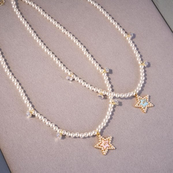 | Color | N1573 blue five-pointed star letter necklace, N1574 pink five-pointed star letter necklace |
