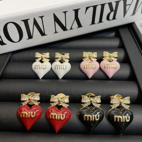 Miumiu Bow & Full-Diamond Love Stud Earrings